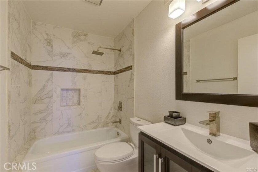 CUSTOMIZED & UPGRADED END UNIT FEELS LIKE A SFR. TOTALLY RENOVATED MOVE IN CONDITION. 3 BR 2.50 BA 2 CAR GARAGE WITH DIRECT ACCESS TO HOUSE.LIVING ROOM WITH FIREPLACE & VAULTED CEILINGS WITH ACCESS TO PRIVATE PATIO AND PATIO COVER, DINING ROOM. NATURAL HARDWOOD FLOORS DOWNSTAIRS, NEW CARPET UPSTAIRS. NEW KITCHEN WHITE CABINETS, NEW APPLIANCES, NEW QUARTZ COUNTERS & NEW SS SINK & FAUCET,NEW TILE FLOORS. REMODELED BATHS INCL. CUSTOM CABINETS, TRAVERTINE FLOORS,MARBLE FLOORS, COUNTERS AND WALLS. LARGE BALCONY UPSTAIRS. NEW PAINT THROUGHOUT, LOTS OF WINDOWS, CENTRAL AIR & HEAT, CUSTOM WINDOW COVERINGS, RECESSED LIGHTING, CEILING FANS, ETC... HOA INCLUDES WATER, SEWER & TRASH. REDUCED FOR FAST SALE