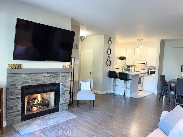" PRICE REDUCTION" Gorgeous property in a gated community, walking distance to the annual strawberry festival, desirable school district shopping centers dining, entertaining, close to Disneyland, easy access to CA-22 and 5Ffeeways. Property amenities include two large pools, two relaxing spas/hot tubs, well maintained exterior landscaping and relaxing stream with fountains throughout the community filled with fish. This lower corner unit with 1 bedroom 1 bathroom comes with newly remodeled kitchen and spacious family room with cozy fireplace. Master suite has one newly installed sink in master bath. Also count with spacious walking closet. Perfect for first time home buyers. investors or retirement home. Property includes one assigned covered parking spot. Lakeside association include sewer, water, trash, landscaping, exterior maintenance and security. There is no additional $129.00 monthly fee in this property. Seller agent is related to the sellers. Note: The unit number is # I-153.
