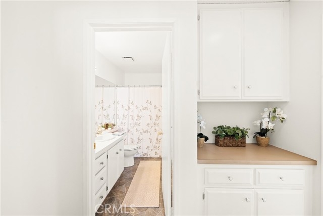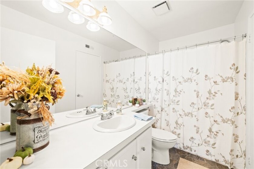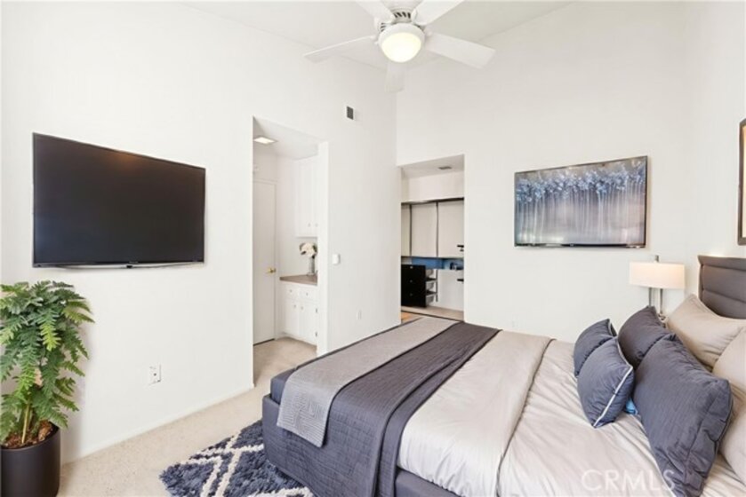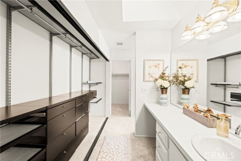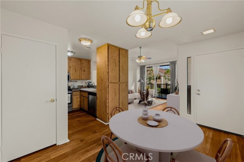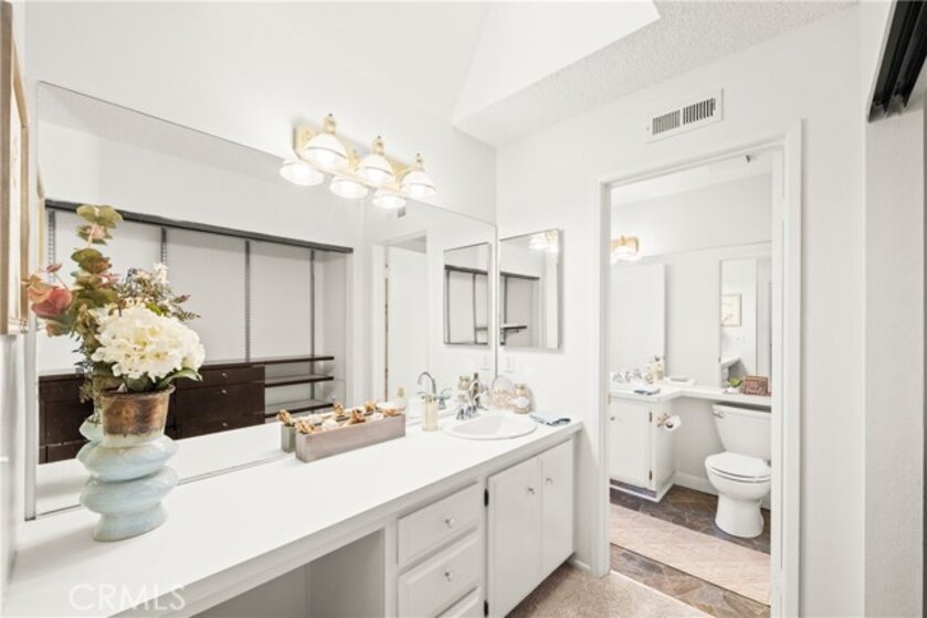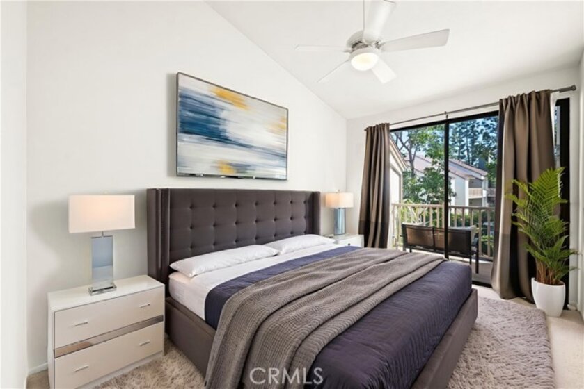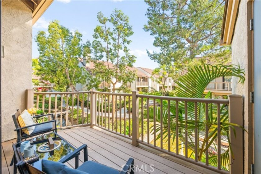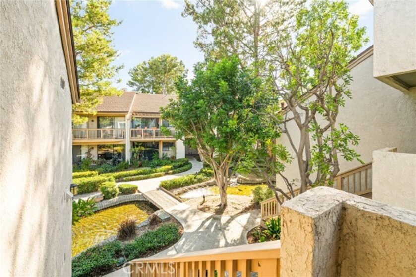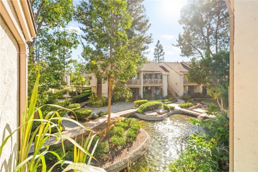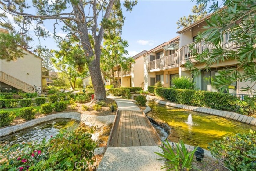 COME ON IN to this stunning, oasis in Garden Grove! This upper-level, corner unit features two bedrooms and two balconies with views of flowing brooks, meandering pathways, and beautifully maintained trees all around! As you step inside, you're welcomed by a roomy living area boasting high ceilings, open floorplan, abundant natural light, a comfortable gas fireplace and a stunning view of the Lakeside Community! As you move in the living room, open the patio doors to listen to the gentle sounds of nearby creeks and streams. Conveniently located on the balcony is a closet that houses the washer and dryer. Just a few steps away, the kitchen awaits, complete with generous dining area with plenty of cabinet space, granite countertops, a stove, a microwave and a breakfast nook. The guest bedroom has plenty of closet space and a hallway bathroom nearby. The spacious primary bedroom featuring a large, walk-in closet. The primary suite also boasts another custom-built closet along with a private vanity and sink, and its adjoining door to the hallway bathroom gives you the convenience of seemingly having two bathrooms. Other fantastic features of this home include central air conditioning, ceiling fans, new carpeting, and a fresh coat of paint throughout. It boasts a newer water heater and a recently acquired dishwasher as well. The Lakeside community is meticulously maintained and gated, featuring two swimming pools, spas and recreational trails behind the community. Nestled amongst lush greenbelts, the area is surrounded by trees, lakes, streams, and convenient sidewalks equipped with doggy waste bins. Additional highlights of this home are the two carport parking spaces and plenty of guest parking available. Enjoy a prime location near downtown Garden Grove, access to the 22 freeway, close proximity to Home Depot, Costco, Garden Grove Central Library, and the various dining spaces, eateries and shops on Main Street! This a must see! Some rooms are virtually staged in the photographs.