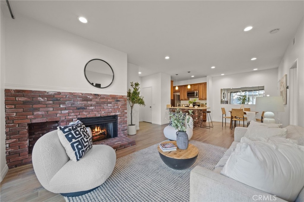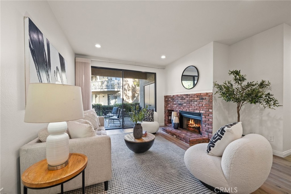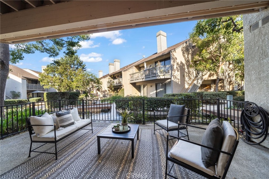 Welcome to this ground floor end unit located in a beautiful, lakeside gated community! Whether you're strolling along koi ponds in the common areas or enjoying a quiet evening fireside in the comfort of your own living room, this abode offers tranquility as a backdrop for modern living. A sprawling open floor plan with plenty of natural light includes versatile flooring throughout. The bedroom features a large walk in closet and the bathroom includes a tub for soaking away the day, as well as a vanity and sink. Enjoy sunny starts to your days with meals at your in-kitchen breakfast bar or in the separate dining area including stainless steel appliances and evenings basking in the glow of your brick stone gas fireplace in the living room. Other features include tons of cabinet storage space, a private laundry, and a large fenced patio next to the water features and stream for a great background. Also includes one covered parking spot. The complex has two on-site pools within the community as well as two spas and incredible landscaping. This pet-friendly community is just around the corner from Garden Grove's Main St. area and local spots such as the city's open air dining hall SteelCraft.
