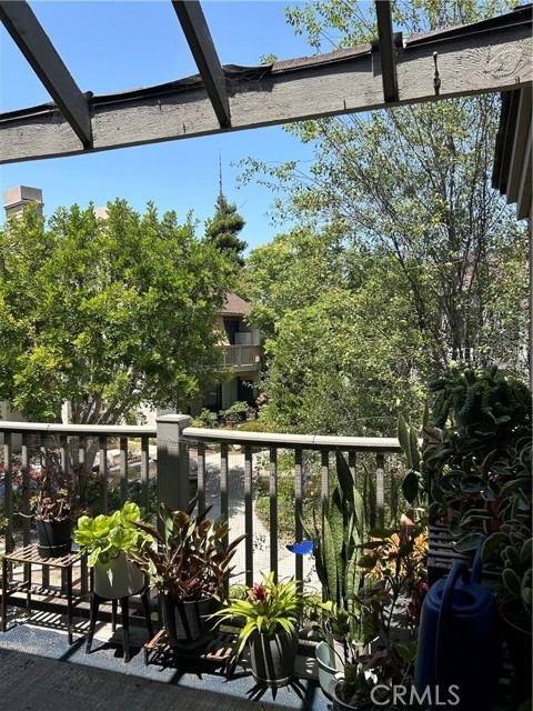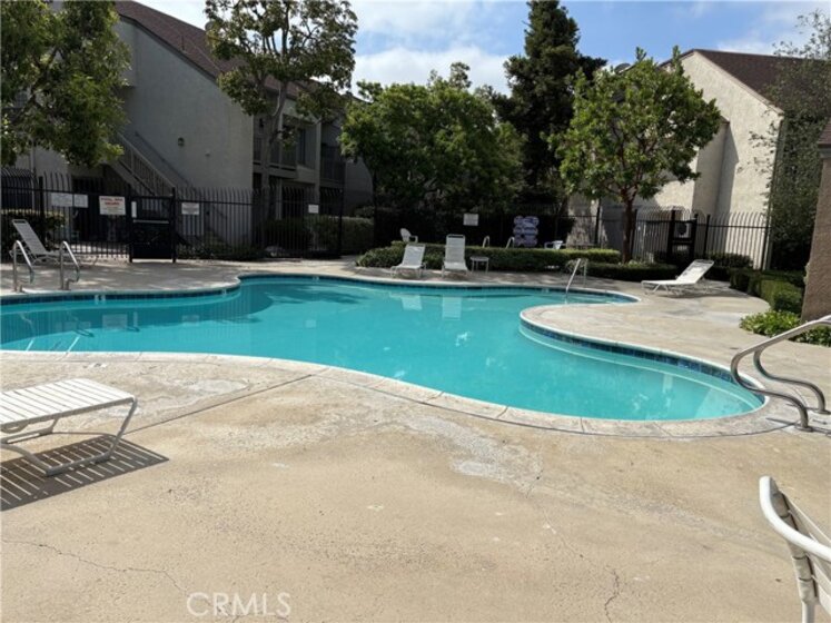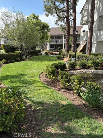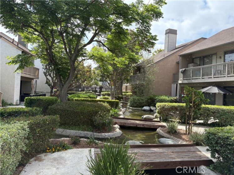 Beautiful secure, gated complex with running streams and winding walkways. Two community pools and spas with small park area. Pet friendly and very well maintained landscaping. Upstairs unit #F, features recently remodeled kitchen with quartz countertops, tile back splash, soft close cabinets, lots of storage, built in microwave and spice rack. Bathroom has also been recently completely remodeled with tile shower/bath enclosure. Vaulted ceilings with ceiling fans throughout. Large balcony off dining room through sliding glass doors with storage closet. Inside laundry for stackable washer and dryer. Primary bedroom has lots of room with own bath and walk-in closet. Extra storage space in attic area. Unit comes with two dedicated covered parking spots with a storage unit.