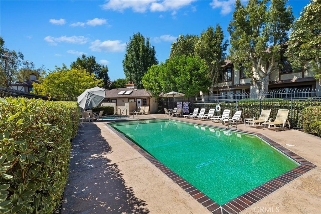 Spacious Condo in a gated community with Bamboo flooring throughout the home. Bright and airy open spacious floor plan. Living room with fireplace, and a spacious balcony great for outdoor dining. Dining room with separate balcony. Kitchen with Garden window and stainless steel appliances. 2 oversized bedrooms with walk-in closets and their own private bathrooms. Laundry is very conveniently located near the bedrooms. 2 car garage with direct access. Garage has plenty of storage. Association features an inground pool, spa with lounge chairs, bathrooms, and an outdoor shower. Great location close to shopping and freeways.