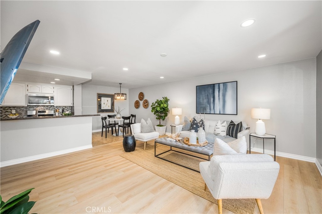 Welcome to your dream condo in the heart of Garden Grove! This stunning residence offers the perfect blend of comfort, style, and sophistication. Boasting 2 bedrooms and 2 bathrooms, this newly updated gem welcomes you with impeccable features at every turn. As you step inside, you'll be immediately captivated by the elegant ambiance created by the beautiful floors that grace the entirety of the space. The heart of the home is the inviting living area, where a cozy fireplace sets the stage for relaxing evenings. Entertain guests with ease in the adjacent dry bar, offering convenience and elegance for any gathering. Indulge in the luxury of two private balconies, one accessible from the spacious living room and another off the primary bedroom. Whether you're enjoying your morning coffee or soaking in the evening breeze, these serene outdoor retreats offer the perfect escape. Illuminate your surroundings with the warmth of recessed lighting, adding a touch of modern flair to every corner of this exquisite abode. The thoughtful design ensures both functionality and style, making every moment spent here a delight. With its prime location and amenities this condo embodies the epitome of urban living.