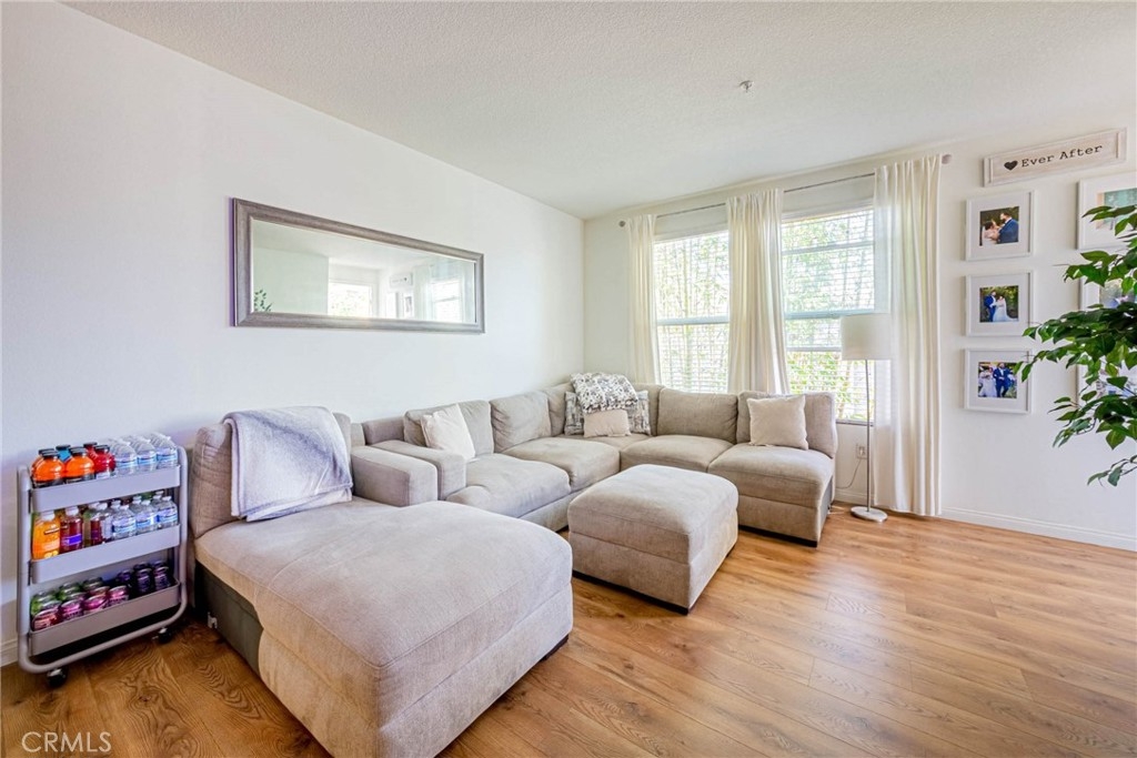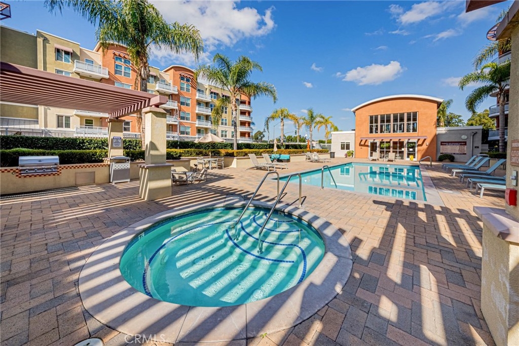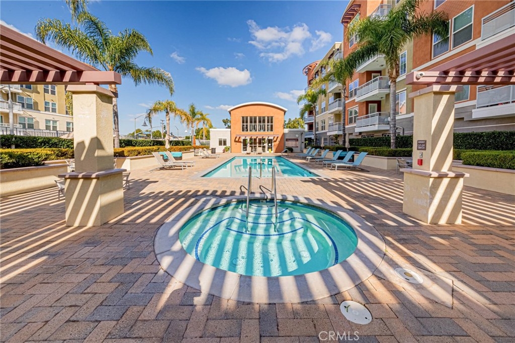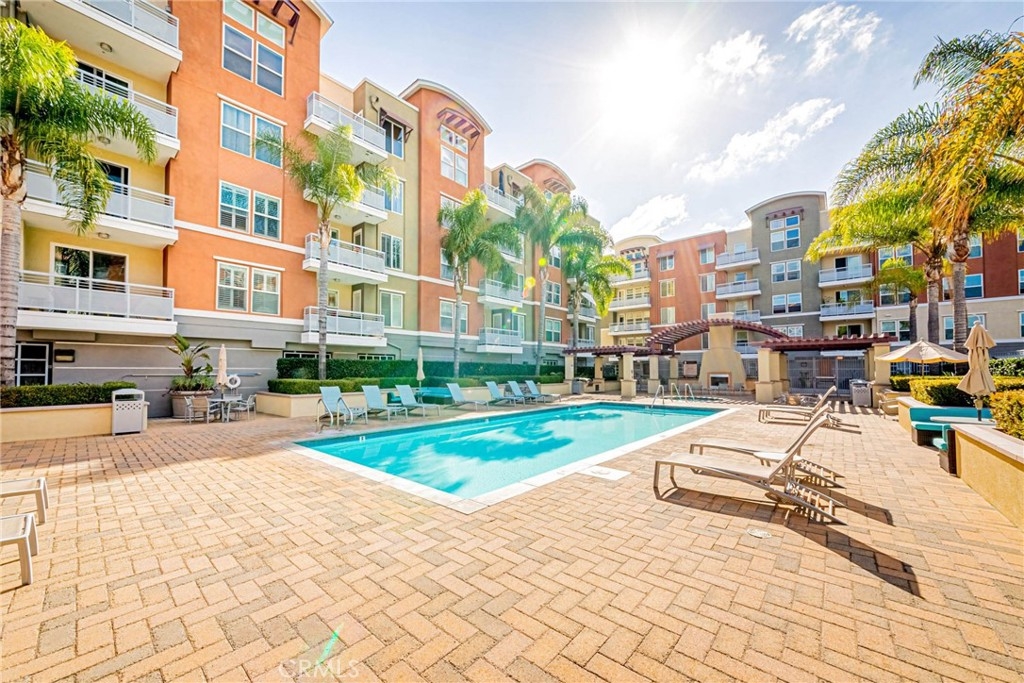 Welcome to the epitome of resort-style living at the Chapman Commons, a gated community nestled in the heart of the Grove District in Anaheim. This stunning contemporary style condo, located on the first floor, offers an array of luxurious amenities including a pool, spa, clubhouse gym, and more. The condo boasts 2 spacious bedrooms, 2 full baths, and a private balcony, all spread across 1,101 square feet of living space. As you step inside, you are greeted by laminate wood floors that flow seamlessly through the living area, leading to tile floors in both bathrooms and plush carpet in the bedrooms. The kitchen is a chef's delight with ample storage space and is conveniently located adjacent to the open dining and living room area. The condo also features a compact laundry room, a full restroom with a tub shower, and two bedrooms, one of which is a master suite with a walk-in closet, a large restroom, and direct access to the balcony. The condo's location is a major highlight, with proximity to major Orange County attractions like Disneyland, Angel Stadium, Honda Center, Anaheim Garden walk & Downtown Disney, the Main Place Mall, and the UCI Medical Center. Easy access to the 5, 22, and 57 freeways makes commuting a breeze. The rent includes water and gas, and the unit comes with 2 car parking spaces and additional storage. Experience the comfort of a vacation resort in your very own home at Chapman Commons. The gated community offers a swimming pool, hot tub, outdoor fireplace, barbeque, and seating all around the pool area. The clubhouse features a kitchen, game room, and a private gym on the 2nd floor. This beautiful single-level condo, built in 2007, showcases an open floor plan with granite counters, stainless-steel appliances, new wood flooring, and neutral paint colors. The luxurious master retreat includes a well-appointed master bath with a soaking tub, granite-topped vanity, and a walk-in closet. The condo also includes 2 assigned parking spaces & extra storage in the parking garage. Association dues cover trash, water, sewer & gas. Don't miss this opportunity to live in a resort-like community, just minutes away from all the action.