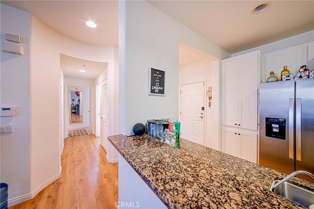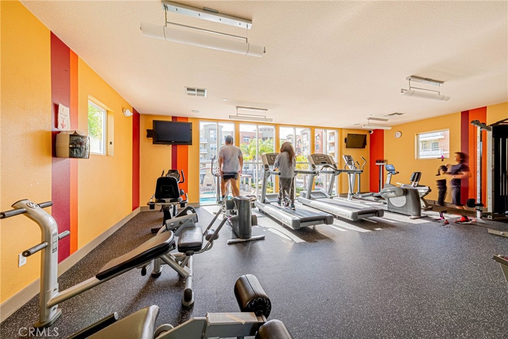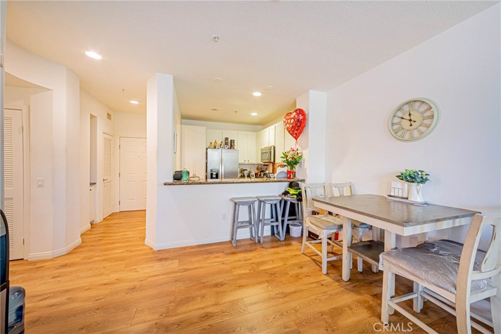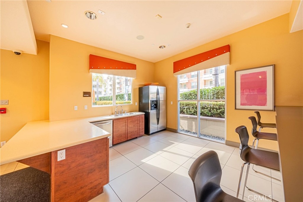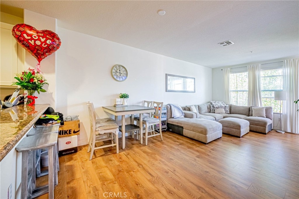 Welcome to the epitome of resort-style living at the Chapman Commons, a gated community nestled in the heart of the Grove District in Anaheim. This stunning contemporary style condo, located on the first floor, offers an array of luxurious amenities including a pool, spa, clubhouse gym, and more. The condo boasts 2 spacious bedrooms, 2 full baths, and a private balcony, all spread across 1,101 square feet of living space. As you step inside, you are greeted by laminate wood floors that flow seamlessly through the living area, leading to tile floors in both bathrooms and plush carpet in the bedrooms. The kitchen is a chef's delight with ample storage space and is conveniently located adjacent to the open dining and living room area. The condo also features a compact laundry room, a full restroom with a tub shower, and two bedrooms, one of which is a master suite with a walk-in closet, a large restroom, and direct access to the balcony. The condo's location is a major highlight, with proximity to major Orange County attractions like Disneyland, Angel Stadium, Honda Center, Anaheim Garden walk & Downtown Disney, the Main Place Mall, and the UCI Medical Center. Easy access to the 5, 22, and 57 freeways makes commuting a breeze. The rent includes water and gas, and the unit comes with 2 car parking spaces and additional storage. Experience the comfort of a vacation resort in your very own home at Chapman Commons. The gated community offers a swimming pool, hot tub, outdoor fireplace, barbeque, and seating all around the pool area. The clubhouse features a kitchen, game room, and a private gym on the 2nd floor. This beautiful single-level condo, built in 2007, showcases an open floor plan with granite counters, stainless-steel appliances, new wood flooring, and neutral paint colors. The luxurious master retreat includes a well-appointed master bath with a soaking tub, granite-topped vanity, and a walk-in closet. The condo also includes 2 assigned parking spaces & extra storage in the parking garage. Association dues cover trash, water, sewer & gas. Don't miss this opportunity to live in a resort-like community, just minutes away from all the action.