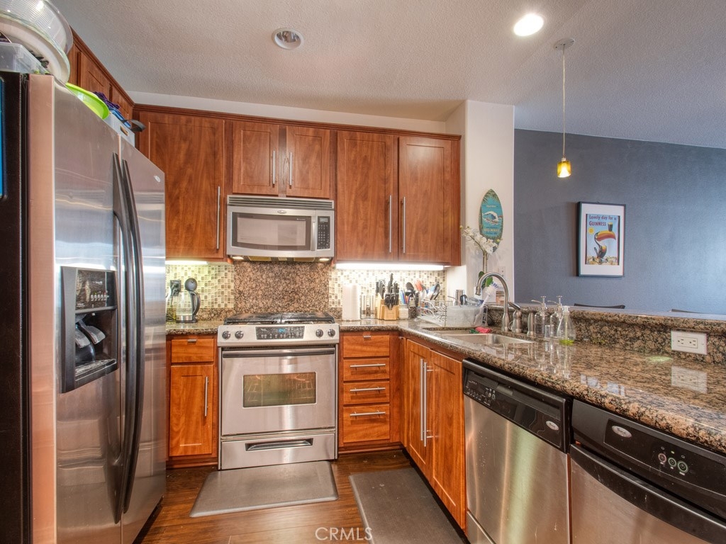 Adorable and Affordable perfect starter home or investment opportunity. This is your chance to own this wonderful 2 BR, 2 BA in sought after Community of Chapman Commons. This complex is minutes to Disneyland, California Adventure and the Orange Outlets. A gated community complete with sparkling pool and SPA, exercise room (Gym) and a stylish recreation room. 2 assigned parking spots located in the basement. Upgraded home with granite counter tops, designer cabinetry, beautiful engineered wood floors, fabulous tiles in bathrooms and a private balcony. Home is in an ideal location overlooking the courtyard and away from the busy streets. Private entrance accessible by elevators. Assigned storage unit in basement close to the parking spaces. Washer/Dryer, Refrigerator and Trash Compactor Included. HOA dues include water, trash, gas and sewer. This is a must see.