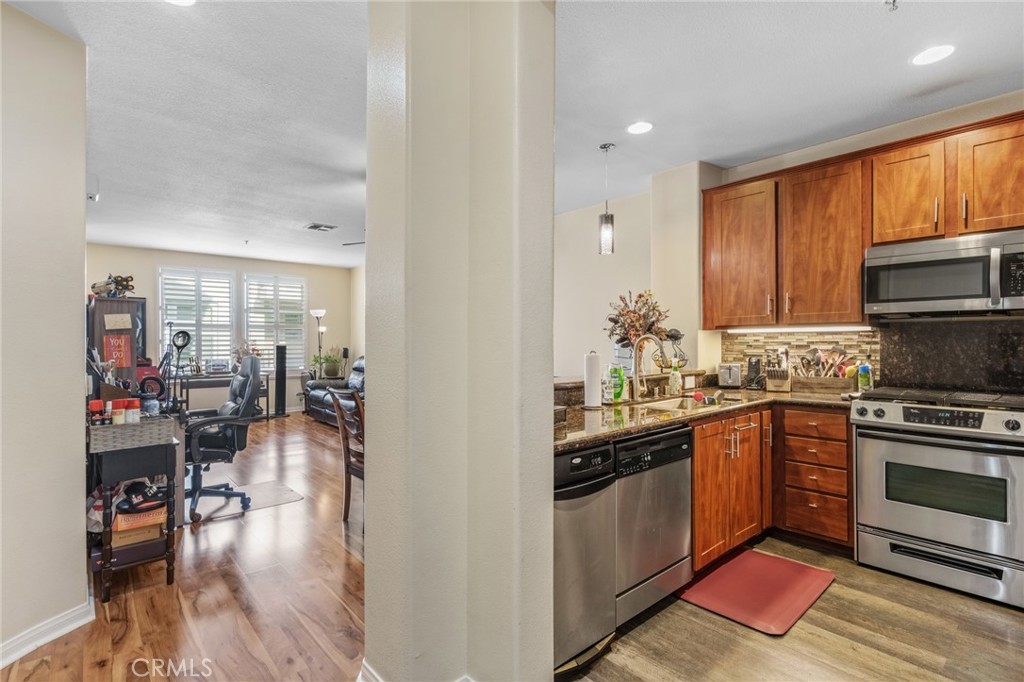 Situated in the desirable Chapman Commons community. Minutes away from major freeways 57, 5, and 22, providing convenient access for commuters. Proximity to popular attractions, such as Disneyland and Disney Downtown. Spacious living room connected to a private terrace. Master bedroom features an ensuite with ample space, a master bathroom, a walk-in closet, and access to the terrace. The unit boasts an open kitchen with granite countertops, wooden cabinets, window shutters and stainless steel appliances. Spacious living room connected to a private terrace. Laundry facilities conveniently located in the hallway closet. The unit includes two parking spaces and one storage space in the basement. Residents can enjoy a range of amenities, including a pool, spa, BBQ area, lounge, clubhouse, and fitness center. The community is pet-friendly, catering to residents with furry companions. The Homeowners Association (HOA) covers water, trash, and sewer services, simplifying living arrangements for residents. The property is described as having a must-see quality, suggesting unique and appealing features that are best appreciated in person. In summary, the property not only offers a convenient and comfortable living space but also provides a range of amenities and services that contribute to a desirable lifestyle. The emphasis on location, amenities, and inclusive HOA services makes it an attractive option for everyone. Professional Pictures Coming Soon