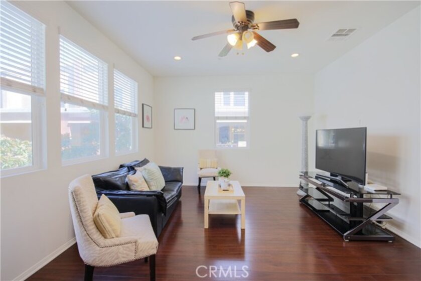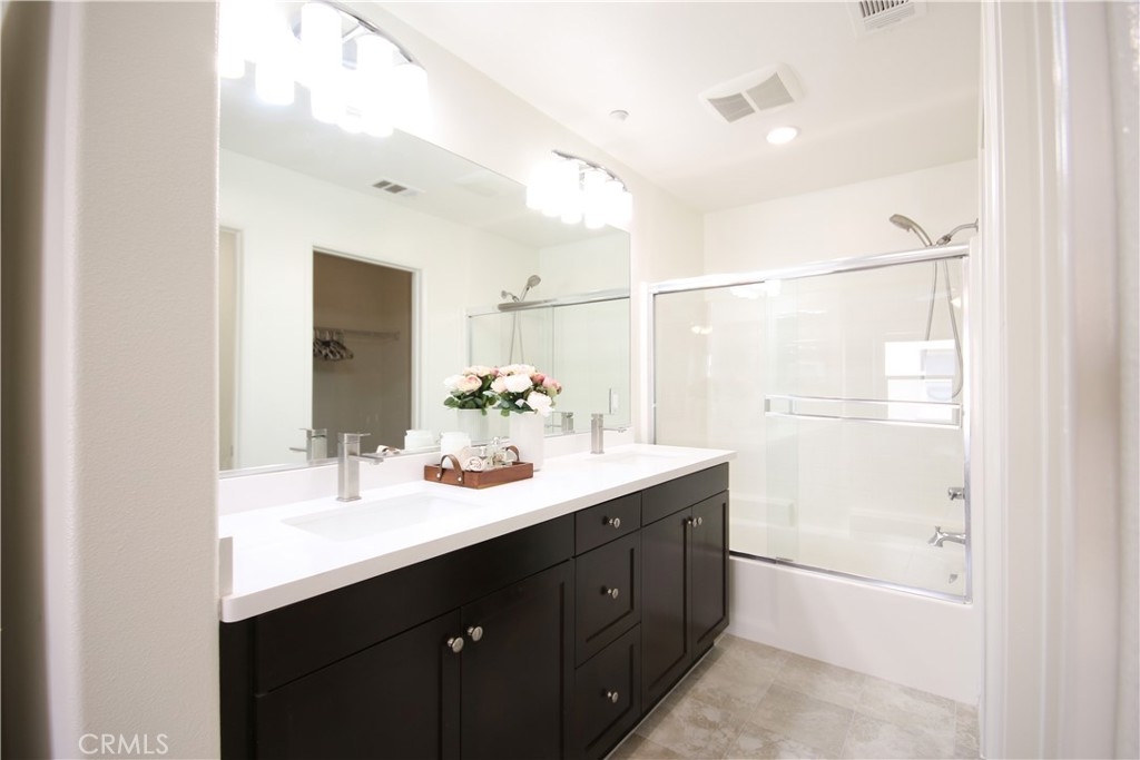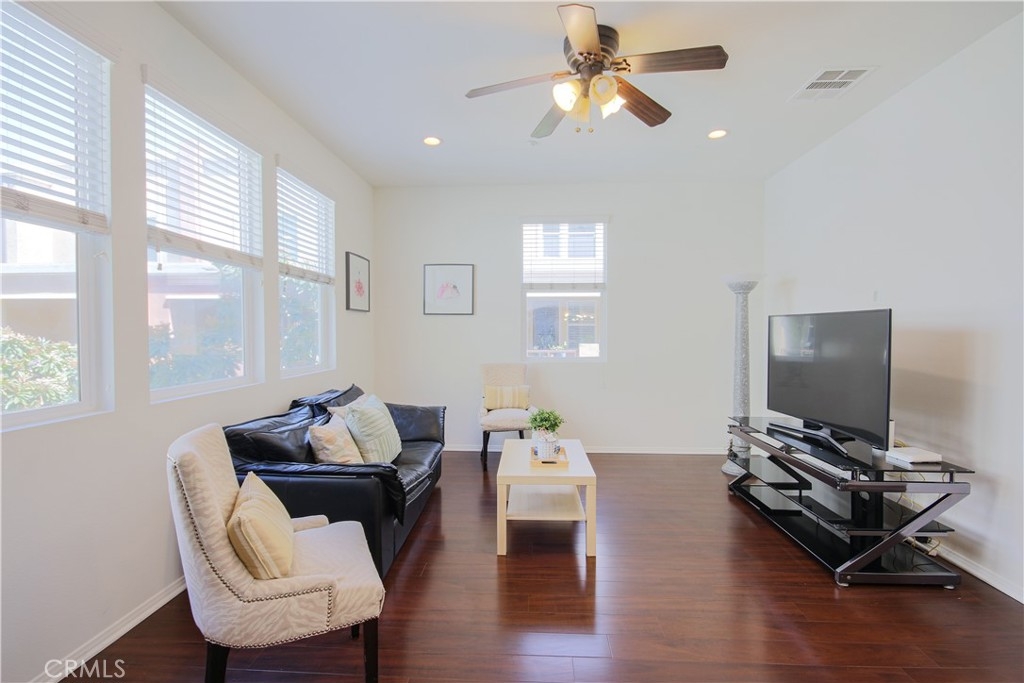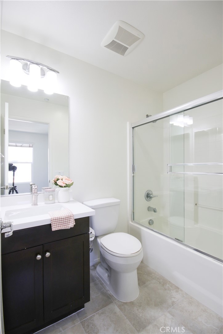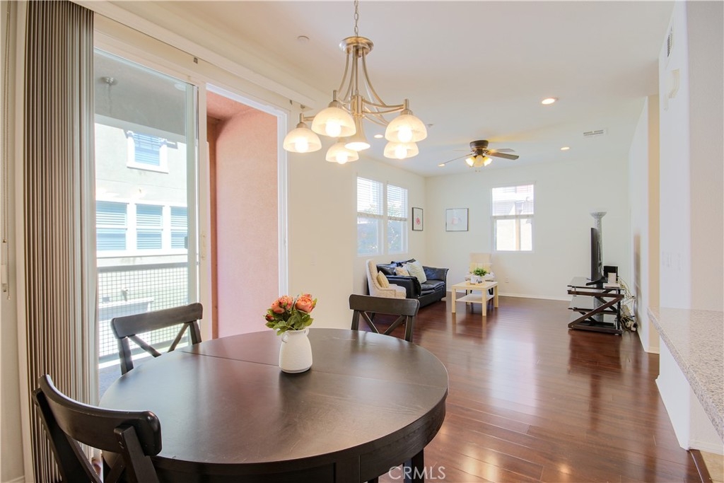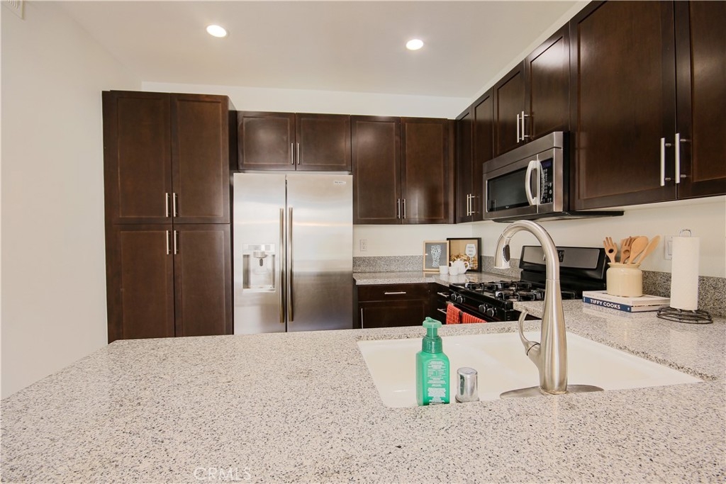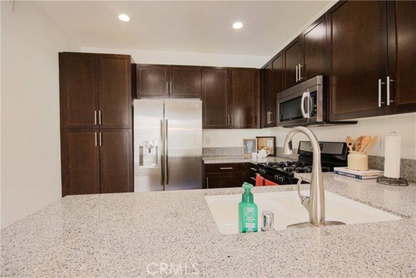 Welcome home to Garden Grove! This tri-level corner townhome offers approximately 1,333 square feet of open-concept living, where the kitchen seamlessly flows into the dining area and living room. It also features a private balcony, perfect for everyday living and entertaining. The kitchen is well-appointed with granite countertops, ample cabinetry, and stainless steel appliances. Upstairs, you'll find a spacious primary suite that includes a generously sized walk-in closet and a well-designed en-suite bathroom complete with dual vanities and a walk-in shower. Additionally, a secondary bedroom with its own private bathroom is located on the top floor, along with a conveniently placed laundry area. Designed with efficiency in mind, this LEED-certified home boasts energy-saving upgrades, including dual-pane windows, a tankless water heater, motion-sensor lighting, low-flow toilets, and high-efficiency Energy Star appliances, all contributing to lower utility costs. Other highlights include an oversized attached two-car tandem garage with extra storage space. Residents of Mosaic Walk enjoy access to a private pool and spa, sun deck, and tranquil courtyards with water features, with water and trash services included in the HOA dues. This home is conveniently situated near the 5, 22, and 57 freeways.