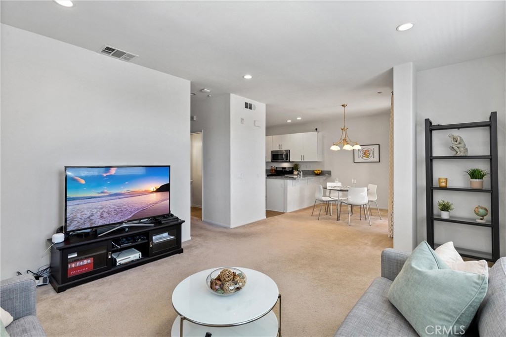 Welcome to the highly desirable & centrally located community of Lotus Walk in Garden Grove. This tri level end unit features a bright & airy open floor plan that has an attached 2 car garage already equipped with 220v outlet for your electric vehicle. The entry features a nice sized area that could be utilized as a work space or a seating area. The sun filled middle level features a spacious living room open to the dining room, kitchen & balcony. The kitchen has tasteful white cabinets & granite countertops along with a full stainless steel appliance package which is all included. The upstairs level features the large master bedroom with dual vanity & shower & walk in closet. The secondary bedroom also features an en suite bathroom. Conveniently located between the bedrooms is the laundry closet & plenty of storage space. The community has a resort style pool, jacuzzi & BBQ area. The HOA dues include the water & trash. This gem is centrally located next to multiple freeways, Disney, Costco, restaurants & so much more.