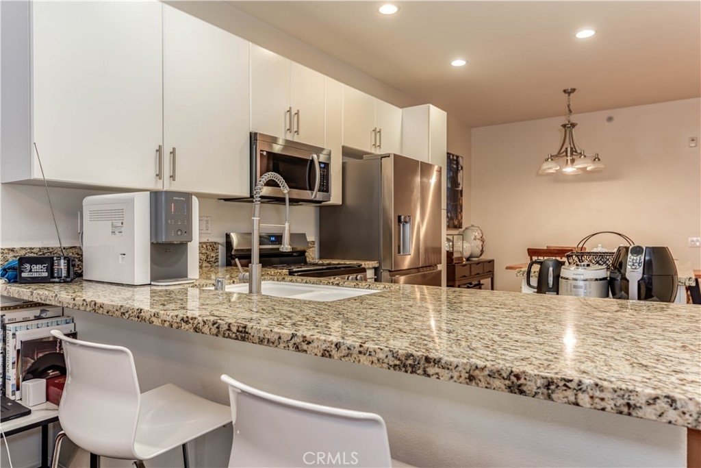 Immaculate and contemporary, this townhome is situated in an ideal location in the vibrant Lotus Walk Community of Garden Grove. The 3-bedroom, 3-bathroom residence boasts an inviting open concept layout with recessed lighting, 2 tandem car garages, and two luxurious master bedrooms. Stepping into the first level, you'll find a convenient coat closet and direct access to the garage, complete with a storage area. As you ascend to the second level, you're greeted by the warmth of maple hardwood floors that grace the open-concept kitchen and adjoining living room. The kitchen is a chef's delight, featuring an expansive eating area, elegant granite counters, abundant pantry cabinets and shelves, a breakfast bar, and a practical island. Recently installed stainless-steel appliances that come with the home, including a dishwasher, gas range, refrigerator, and microwave, elevate the kitchen's functionality and style. The living room, bathed in natural light, extends seamlessly to a balcony, creating an ideal space for outdoor relaxation. Adjacent to the kitchen, a 3/4 bathroom and a generously sized guest bedroom offer comfort and privacy. Continuing to the third level, the home unfolds to reveal a capacious master suite, a secondary master bedroom, and a convenient laundry room with included washer and dryer. The master suite encompasses a walk-in closet and a private en suite with a dual vanity, a spa-like walk-in shower, and a privacy toilet. The secondary master bedroom offers another walk-in closet and a full bathroom. Embracing a distinctive lifestyle, the Lotus Walk Community provides a host of desirable amenities including, water paid, a sparkling pool, relaxing spa, and inviting BBQ area. Ideally located within walking distance to Haster Basin Recreational Park, the Great Wolf Lodge Water Park, and 2 miles to Disneyland, this home effortlessly blends convenience with leisure. Residents also enjoy easy access to the I-5 and 22 Freeways, Costco, Steelcraft, Garden Grove Main Library, and Main Street's eclectic array of eateries and shops.