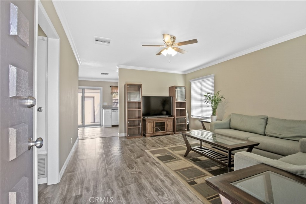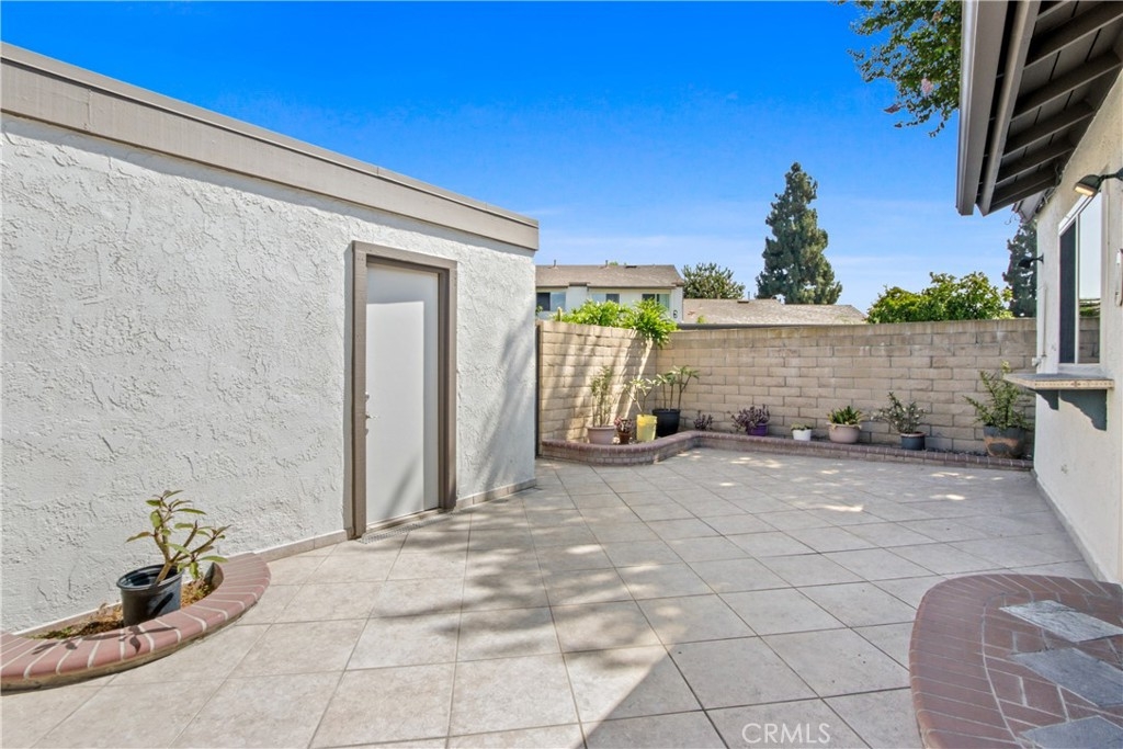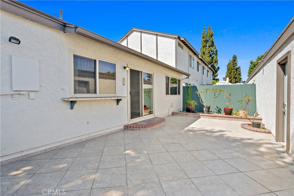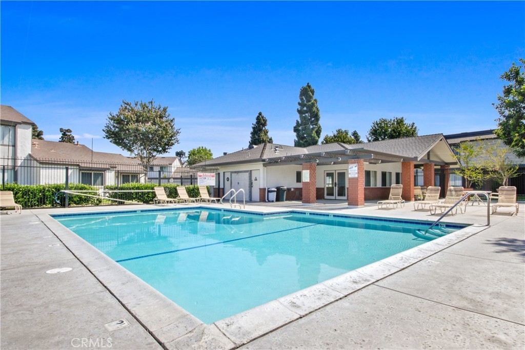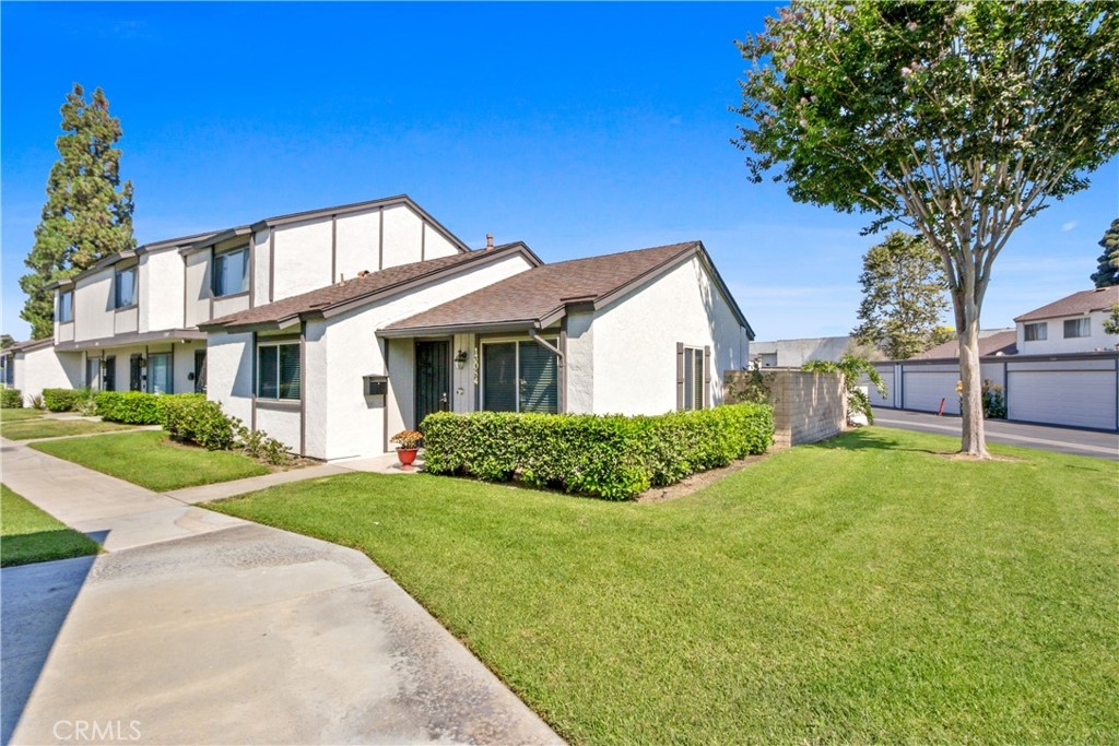 Welcome to this highly desirable single-story end unit that perfectly combines modern upgrades with classic comfort. This inviting home boasts 2 spacious bedrooms and 1 beautifully updated bathroom, ideal for first-time buyers, down-sizers, or anyone seeking a serene living space. Step into the bright and airy kitchen, where you'll find elegant granite countertops and pristine white shaker cabinets with soft-close features, ensuring both style and functionality. The beautiful laminate flooring throughout the home adds a touch of sophistication and ease of maintenance, making daily living a breeze. One of the standout features of this unit is the large private patio, with private rear entrance, perfect for outdoor dining w/ option for gas connection, gardening, or simply relaxing in the fresh air. The patio offers direct access to your private 2-car garage, which comes equipped with ample storage space and convenient washer and dryer units. As an end unit with only one common wall, this home benefits from an abundance of natural light, creating a warm and welcoming atmosphere. Recent updates include a newer water heater and fresh exterior paint for the entire complex, enhancing the overall appeal and ensuring peace of mind for years to come. Enjoy the community amenities, including a refreshing pool, lots of GREEN space, and a smart community layout perfect for those warm summer days. With its fantastic location and thoughtful upgrades, this home is truly a gem. Don't miss the opportunity to make it yours!