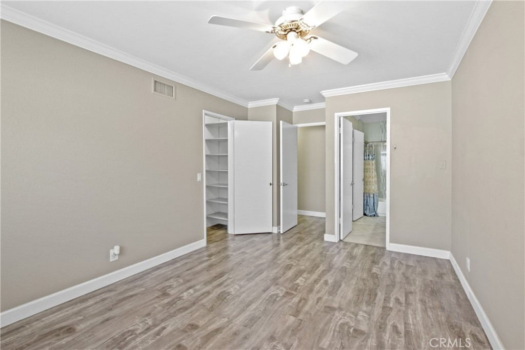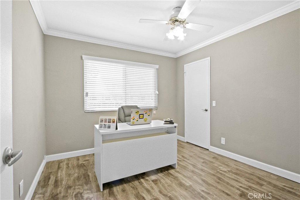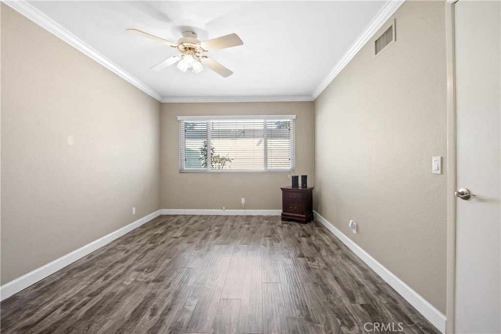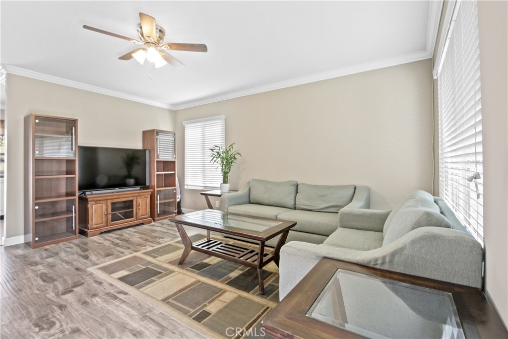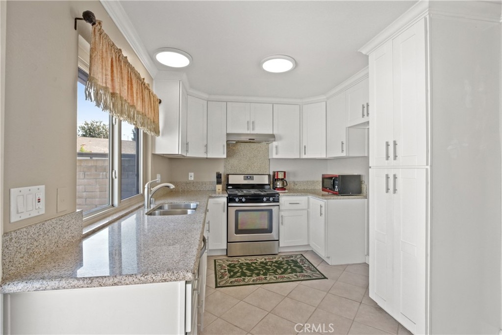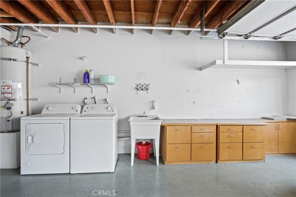 Welcome to this highly desirable single-story end unit that perfectly combines modern upgrades with classic comfort. This inviting home boasts 2 spacious bedrooms and 1 beautifully updated bathroom, ideal for first-time buyers, down-sizers, or anyone seeking a serene living space. Step into the bright and airy kitchen, where you'll find elegant granite countertops and pristine white shaker cabinets with soft-close features, ensuring both style and functionality. The beautiful laminate flooring throughout the home adds a touch of sophistication and ease of maintenance, making daily living a breeze. One of the standout features of this unit is the large private patio, with private rear entrance, perfect for outdoor dining w/ option for gas connection, gardening, or simply relaxing in the fresh air. The patio offers direct access to your private 2-car garage, which comes equipped with ample storage space and convenient washer and dryer units. As an end unit with only one common wall, this home benefits from an abundance of natural light, creating a warm and welcoming atmosphere. Recent updates include a newer water heater and fresh exterior paint for the entire complex, enhancing the overall appeal and ensuring peace of mind for years to come. Enjoy the community amenities, including a refreshing pool, lots of GREEN space, and a smart community layout perfect for those warm summer days. With its fantastic location and thoughtful upgrades, this home is truly a gem. Don't miss the opportunity to make it yours!