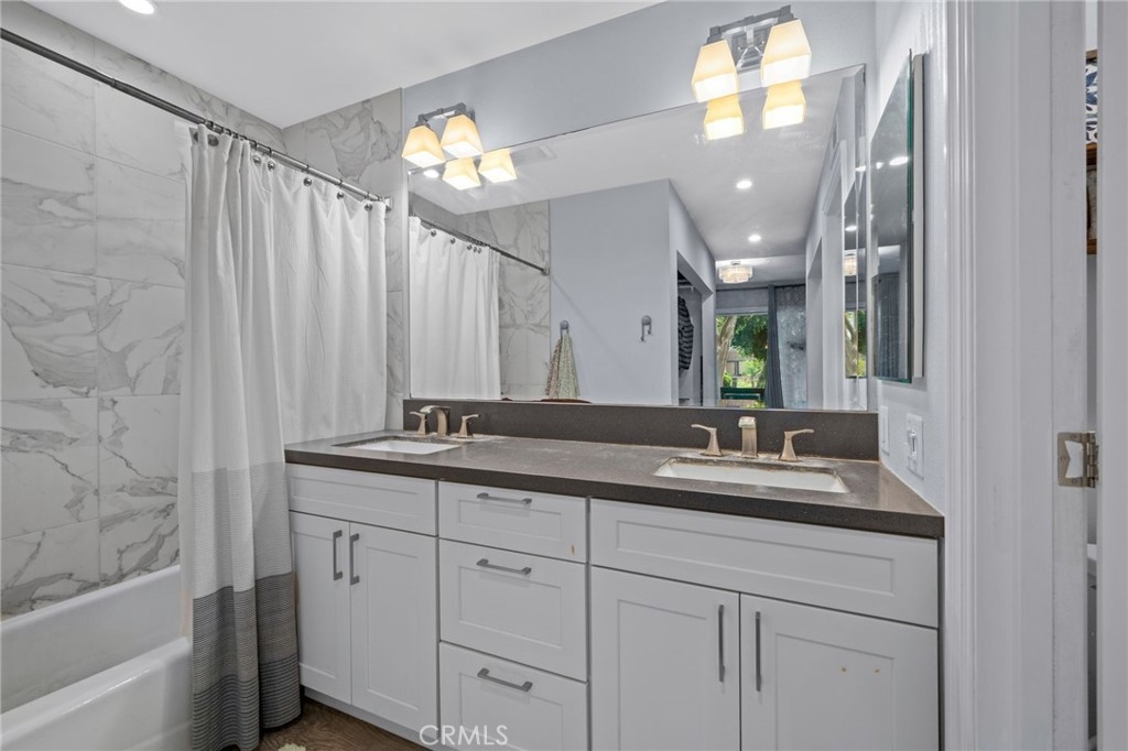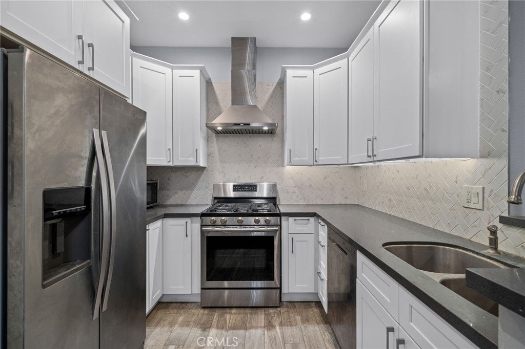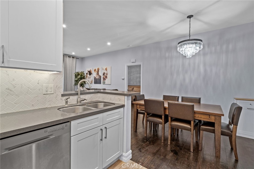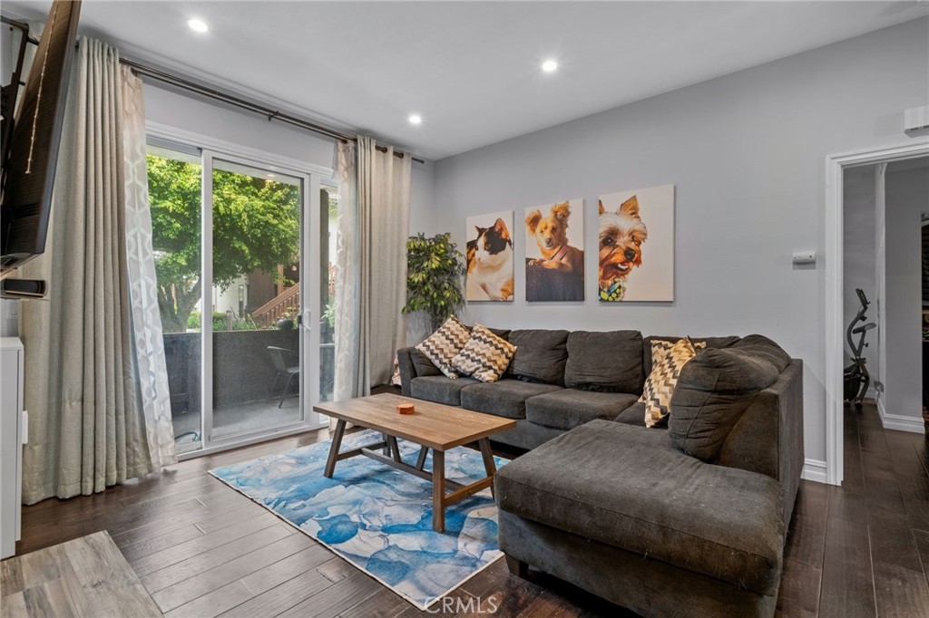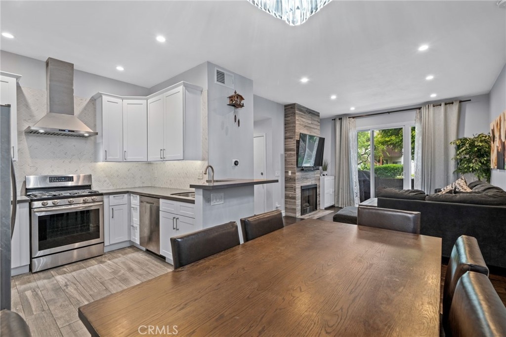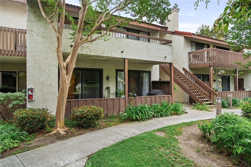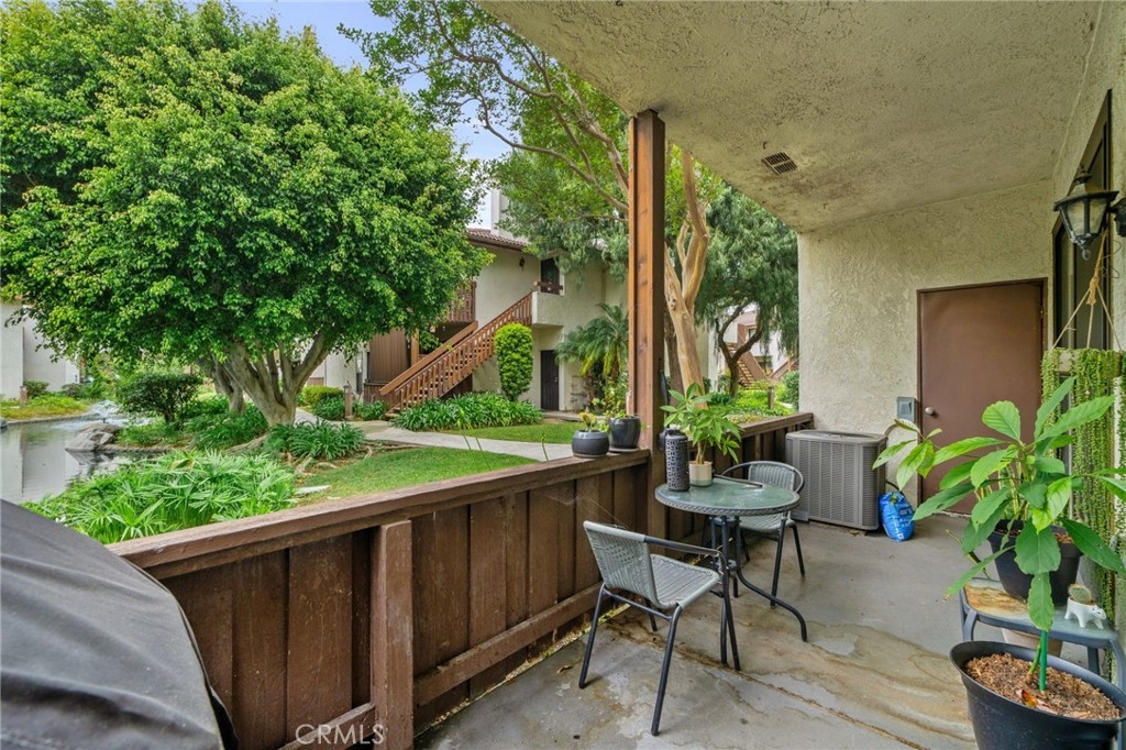 Welcome home! This turnkey property is located just minutes away from Disneyland in the desirable Meadowbrook Village community, offering a variety of amenities including a pool, spa, barbecue areas, clubhouse, tennis courts, a community koi pond, and more! This first-level unit features 774 sq. ft. of living space, with one bedroom and one bathroom. Upon entry, you are greeted by plank flooring installed throughout, providing a uniform flow and easy maintenance. The main living area is open and inviting, perfect for entertaining, and features a floor-to-ceiling backdrop and a cozy fireplace. The kitchen has been boasts quartz countertops, stainless steel appliances, a custom range hood, and ample cabinet space for all your storage and organizational needs. The bedroom offers direct access to the patio and includes a walk-in closet with custom storage. The bathroom features dual sinks, quartz countertops, and a tile backsplash in the shower. Inside laundry room for additional convenience. The patio area provides plenty of space to enjoy the view of the pond while soaking up the California sunshine. Don’t miss this opportunity! Schedule your private showing today.