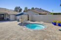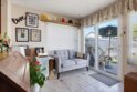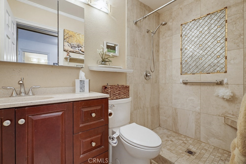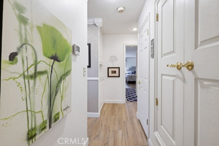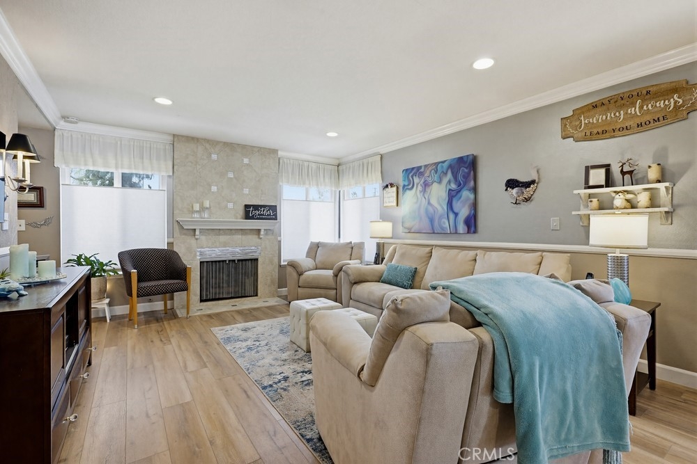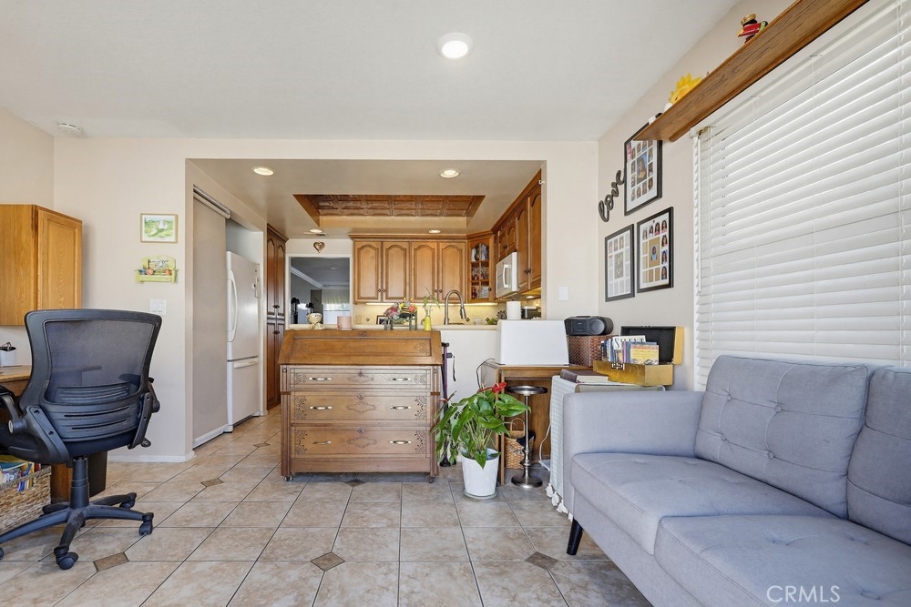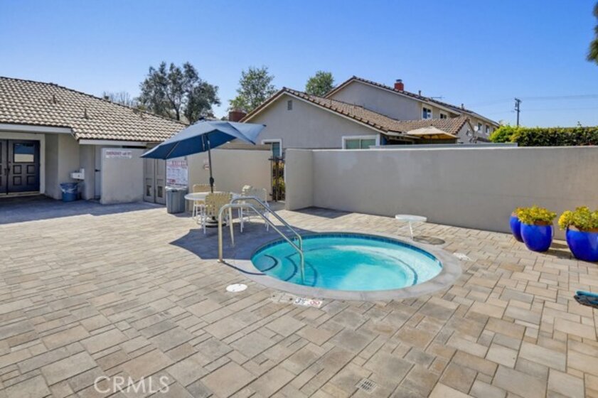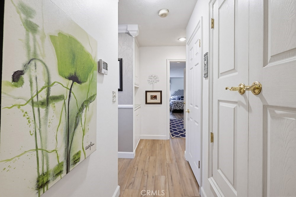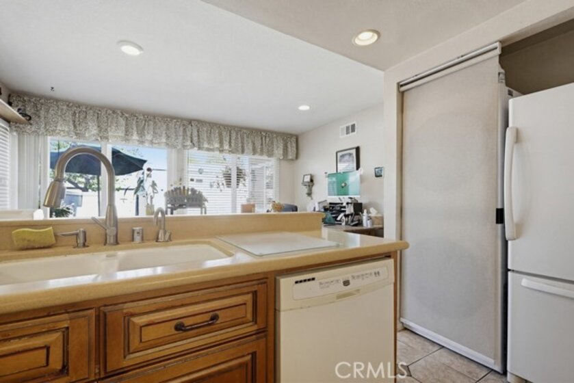 Highly sought-after Valley View Townhome gated complex. This 2-bedroom 2-bath townhome has been tastefully upgraded throughout. The spacious living room/dining room combination features a remodeled cozy fireplace and mantle as well as smooth ceilings, recessed lighting, crown molding, and an on-trend color palette. The Kitchen features maple cabinetry and granite countertops, with newer appliances. Inside laundry stackable units remain with the sale. The primary bedroom has an en-suite bathroom with a custom tiled walk-in shower. The small seating area next to the kitchen is perfect for a home office or additional dining table. The light and bright rear patio has been landscaped with stepping stones turf and potted plants for a parklike, relaxing setting.