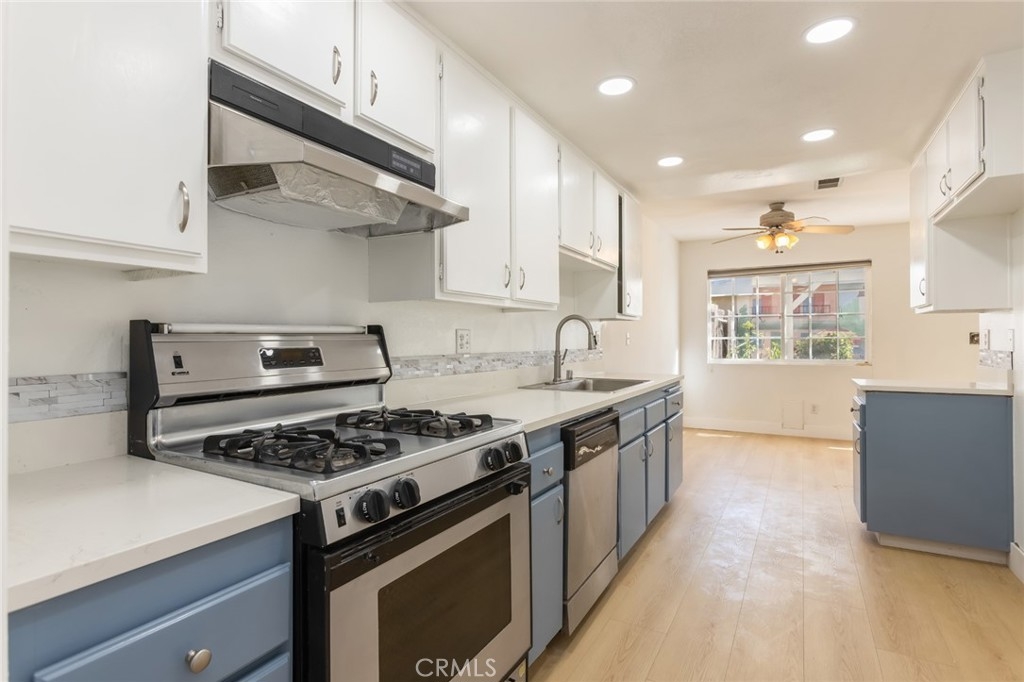 The Stonegate community complex in the highly desirable West Garden Grove neighborhood welcomes you to this updated town home with resort like amenities. Open and spacious floorplan with an abundant amount of natural lighting. A remodeled kitchen with new quartz countertops, sink, has recessed lighting and refaced cabinets. Opens up to the dining area and living room. Living room has a cozy fireplace and sliding door which leads to the private backyard and two car garage. Perfect to plant your own home garden and space for your pet. Home has central heat and AC, has been freshly painted and all bedrooms have plantation shutters. One bedroom is on the main level along with a half bath. New waterproof laminate flooring throughout. The HOA has upgraded the electrical panel, has a pool, tennis court and club house. Home is walking distance to grocery stores and the popular Eastgate Park which hosts concerts, outdoor movies at the park and many more fun activities. Short drive to Costco and freeway and plenty of restaurants to choose from. Great community to be associated with.