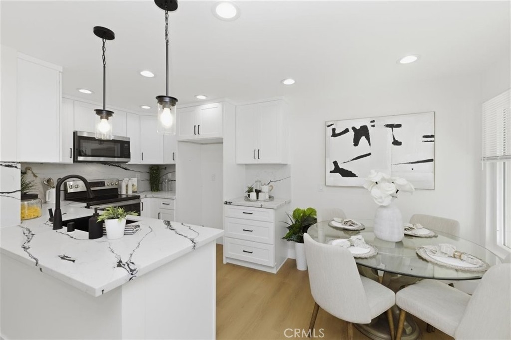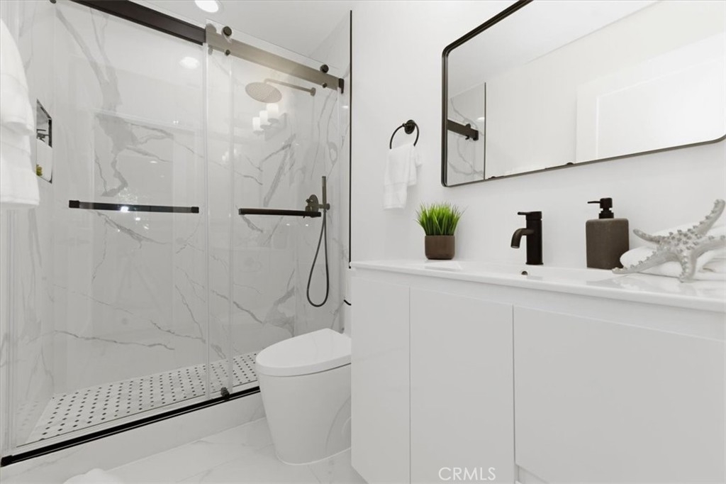 Stunning Luxury condo in a prime location on the Border of Garden Grove and Huntington Beach. Just 8 Miles from the Beach and right across the street from Pacifica High School. This Condo has been completely renovated and everything is BRAND NEW! As you walk up to the front door the luxury awaits you once you walk into your new oasis you will see the floor-plan and up-grades. There are new luxury vinyl floors through-out the entire home with 4 inch baseboards and new interior paint. All the electrical has been re-done from the outlets to recessed lighting. The Kitchen is ALL NEW as well and is just gorgeous. New black farmhouse sink adds character and a wow factor to the kitchen. Quartz countertops match perfectly with the farmhouse sink and fixtures making this home design flow seamlessly. There are brand new stainless steel appliances. The custom doors and handles add special touches throughout the home. Guest bathroom has been upgraded as well with all new tile flooring, shower tile, Barn door glass doors, vanity, toilets, lighting and mirrors. The primary bedroom is spacious for a king size bed and includes a walk-in closet with a custom Bar door and added built-in for extra storage. Primary bathroom has a large beautiful walk-in shower with glass barn doors, and all new vanities, toilets, fixtures. Seller installed ALL NEW WINDOWS and HEATING & AIR CONDITIONING adding to owning a more energy efficient home. Enjoy the patio with a great area to relax and it is covered! The patio overlooks the pool and is a great location and covenant within the community. Includes a 1 car garage and 1 carport plus there is plenty of guest parking for your guest. The HOA includes trash. There is 1 pool and 2 spa areas. A car Wash area is also included for convenience This is a low maintenance condo for a person with a busy lifestyle. Gated community for privacy. There is NOTHING you need to do but pack your bags and move in. No repairs, no fixers and unexpected costs. This home has everything you need and with beautiful luxury upgrades! Pacifica High School is across the street. Boarding multiple cities makes this home a great location and close to the 405 and the 22 freeway. and just miles from the beach where you can be close enough to enjoy without making it a whole day trip.