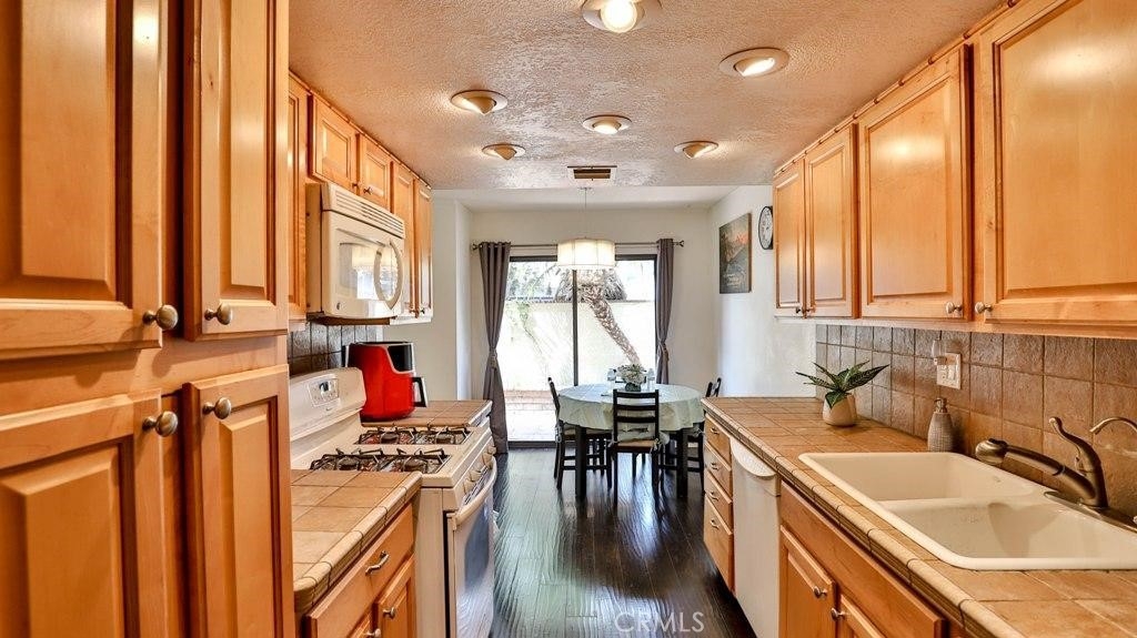 THIS ELEGANT TOWNHOUSE IN A GATED COMMUNITY, OFFERS 2 MASTER BEDROOMS, 2.5 BATHROOMS AND 2 PATIOS. A QUIET CUL-DE-SAC LOCATION! RED TILE ROOF. A BRIGHT LIVING ROOM WITH A FIREPLACE AND WINDOWS! WOOD FLOORING THROUGHOUT THE HOUSE. THE KITCHEN HAS LOTS OF CABINETS, A GAS STOVE, A DISHWASHER, AND A DINING AREA THAT STEPS OUT TO A PRIVATE PATIO! THE UPSTAIRS OFFERS TWO MASTER BEDROOMS WITH CATHEDRAL CEILINGS; ONE IS A HUGE MASTER SUITE THAT INCLUDES A WALK-IN CLOSET, A DUAL VANITY, A SKYLIGHT, AND A BIG BALCONY LOOKING OUT TO THE BLUE SKY! A LAUNDRY AREA TUCKED OUT OF SIGHT. 2-CAR GARAGE DIRECTLY ACCESSING THE HOME, TESLA CHARGER AND GUEST PARKING ARE AVAILABLE. LOW HOA INCLUDING TRASH, GROUND, INSURANCE, AND EXTERIOR PAINTING. GREEN TREES THROUGHOUT THE COMPLEX. CONVENIENTLY ACCESS TO FREEWAYS, SHOPPING, RESTAURANTS, LITTLE SAIGON AND KOREAN TOWN.