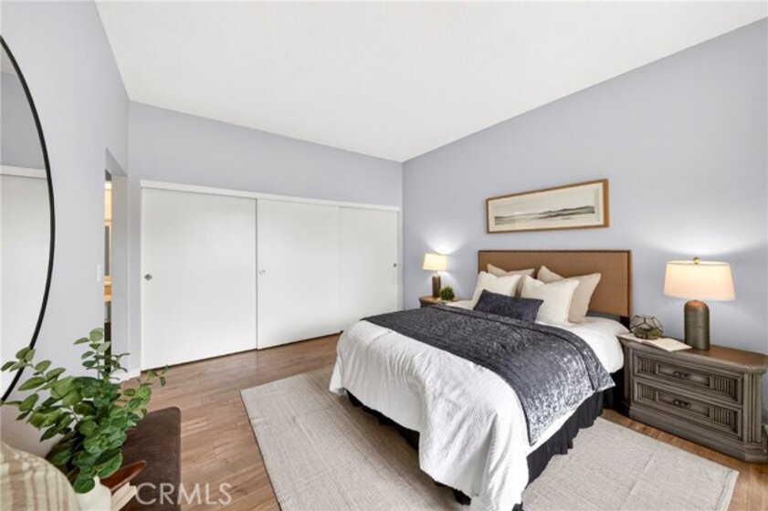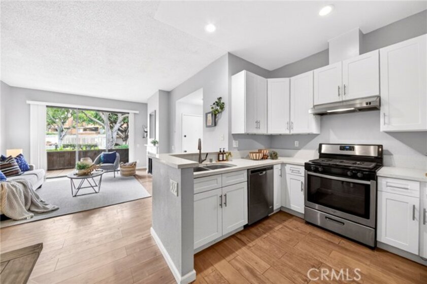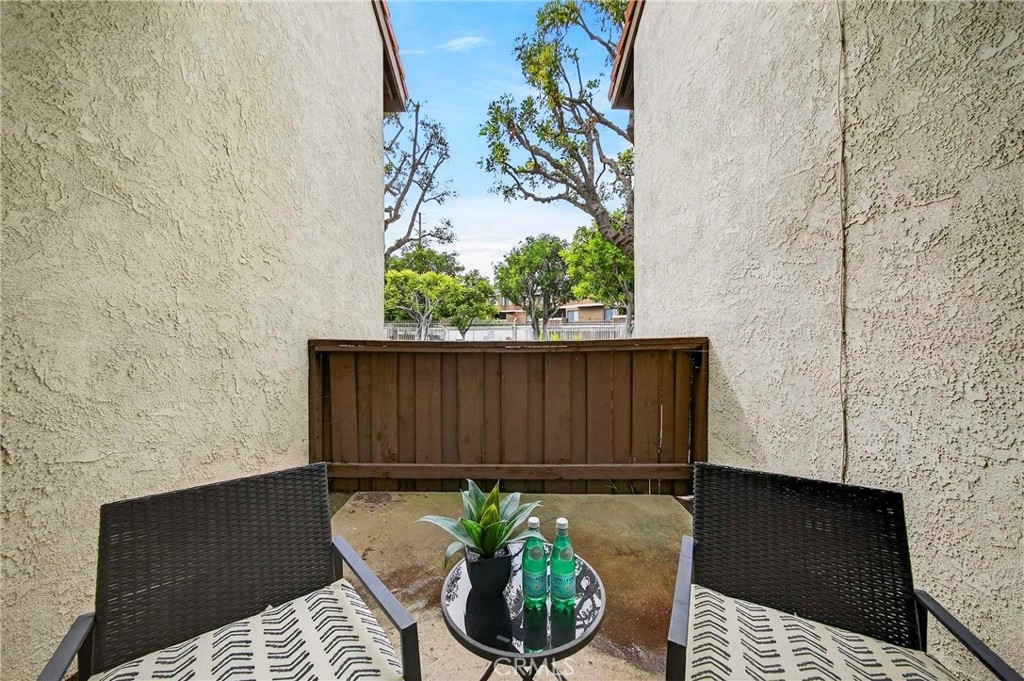 Experience resort-style living in the heart of Garden Grove! Located in the peaceful, gated community of Meadow Brook Village, this ground-level end unit offers a rare combination of privacy, comfort, and scenic views. Unique Bedroom Layout: This floor plan is designed for indoor-outdoor flow—both bedrooms feature direct sliding door access to the private balcony, perfect for enjoying the cool evening breeze. A sun-drenched, open layout featuring a cozy fireplace in the living room and a dedicated dining area. Modern Conveniences: The primary bedroom includes a private dressing area with an individual sink, plus the unit features an indoor laundry area with laminate floor throughout. Includes a full 2-car detached garage. Community has amenities including streams and koi ponds, clubhouse, sparkling pool, spa, and lighted tennis courts. Prime Location: Minutes from the 22 Freeway, Newland Plaza shopping, and top-rated schools. A short drive brings you to Disneyland, Mile Square Park, and local beaches.