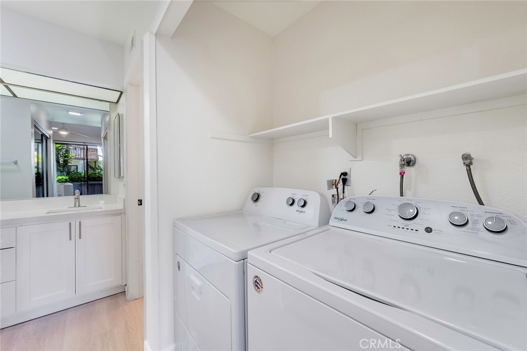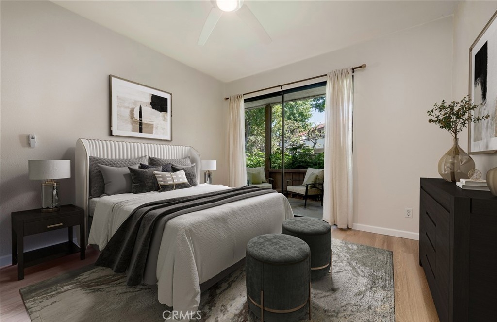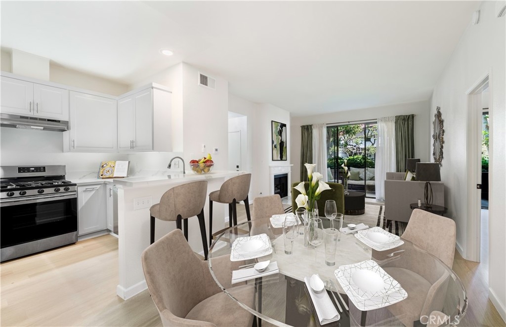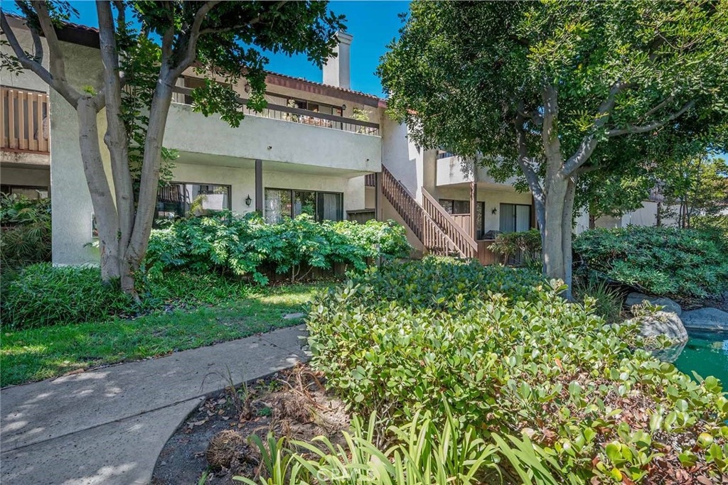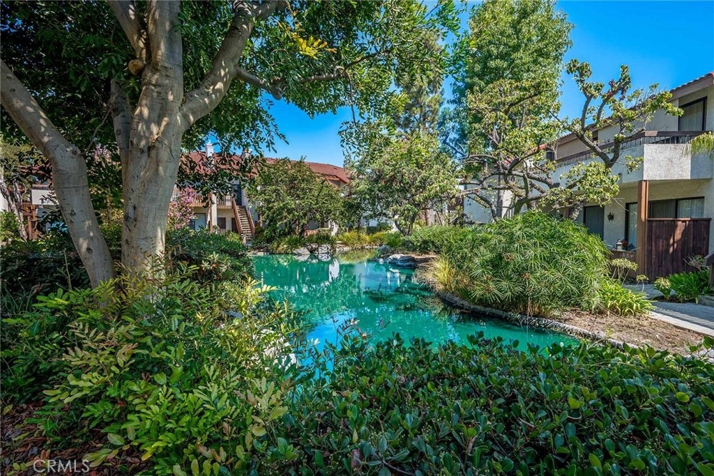 Beautiful home in Garden Grove with Scenic Pond Views and Resort-Style Amenities. This 1-bedroom condo is one of the best-priced units in Garden Grove. Attention to detail abounds with a brand-new kitchen featuring quartz countertops, new cabinetry and stainless appliances. This home has both a countertop bar and dining area for meals. The living room features a gas fireplace, perfect for cozy evenings. The upgraded bathroom features a new double-sink vanity and a private toilet. The bedroom is generously sized, complete with a walk-in closet, and the home is outfitted with new wood style flooring. The washer and dryer are located in their own dedicated area. Central AC and heating, ensuring year-round comfort. With direct access to a large patio from both the living room and bedroom, enjoy park-like views of the pond and check out the fish and ducks too. This gated community includes a pool, hot tub, tennis courts, and a clubhouse, all just a short walk away. There’s also abundant guest parking and a two-car garage with remote access, and a locking storage room off the patio adds convenient storage. Surrounded by lush landscaping in a garden-like setting, this peaceful condo has one of the best locations in the community. Perfect for first-time buyers, downsizers, or investors, this condo represents a rare opportunity at an outstanding price.