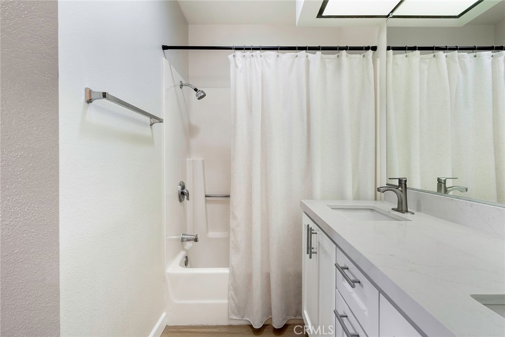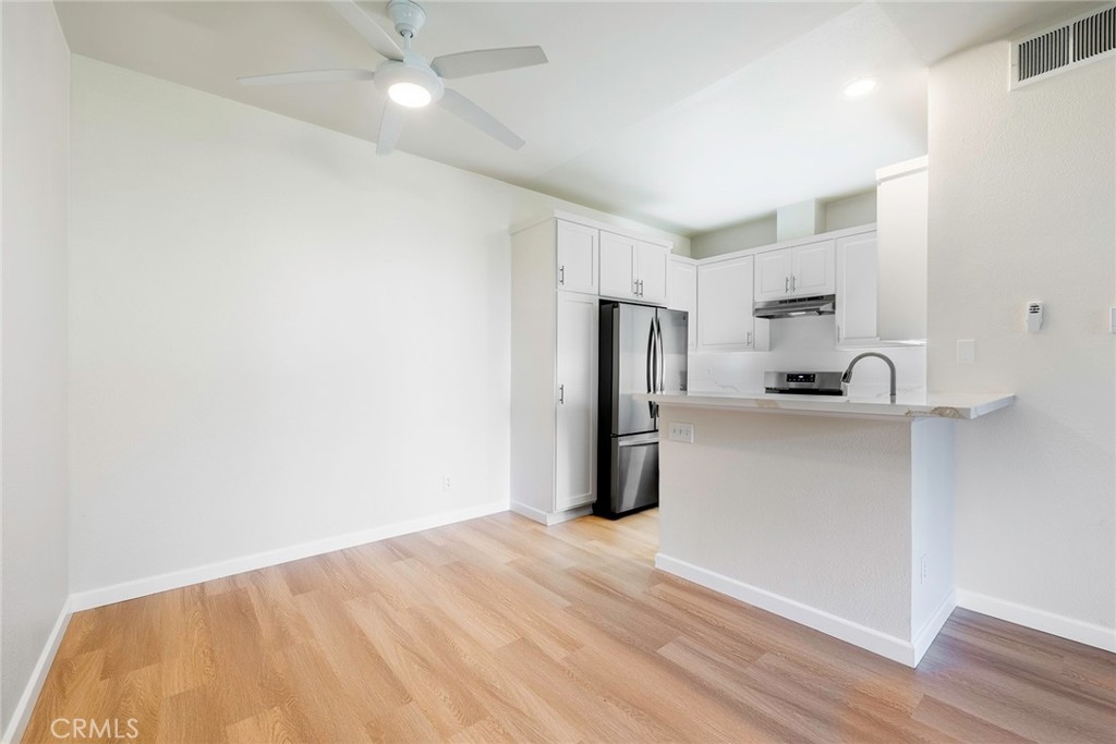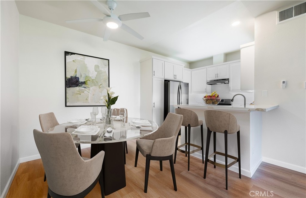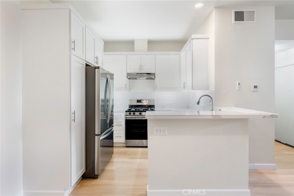 Beautiful home in Garden Grove with Scenic Pond Views and Resort-Style Amenities. This 1-bedroom condo is one of the best-priced units in Garden Grove. Attention to detail abounds with a brand-new kitchen featuring quartz countertops, new cabinetry and stainless appliances. This home has both a countertop bar and dining area for meals. The living room features a gas fireplace, perfect for cozy evenings. The upgraded bathroom features a new double-sink vanity and a private toilet. The bedroom is generously sized, complete with a walk-in closet, and the home is outfitted with new wood style flooring. The washer and dryer are located in their own dedicated area. Central AC and heating, ensuring year-round comfort. With direct access to a large patio from both the living room and bedroom, enjoy park-like views of the pond and check out the fish and ducks too. This gated community includes a pool, hot tub, tennis courts, and a clubhouse, all just a short walk away. There’s also abundant guest parking and a two-car garage with remote access, and a locking storage room off the patio adds convenient storage. Surrounded by lush landscaping in a garden-like setting, this peaceful condo has one of the best locations in the community. Perfect for first-time buyers, downsizers, or investors, this condo represents a rare opportunity at an outstanding price.