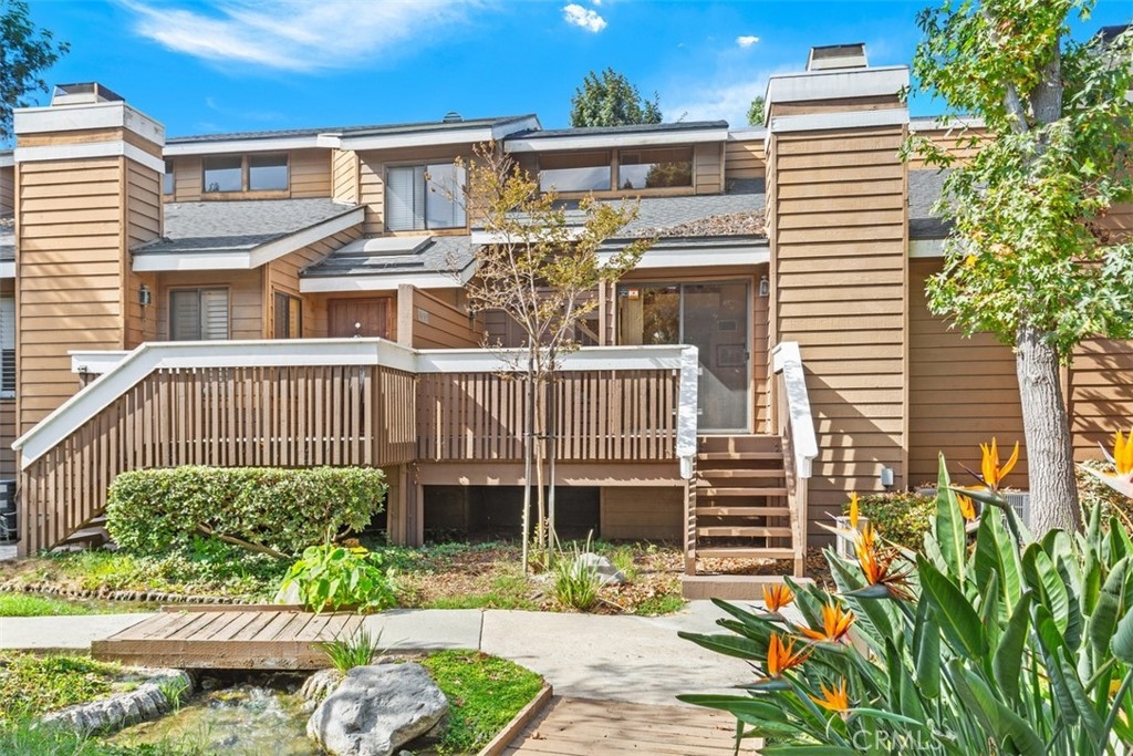 Spacious tri-level townhome in the beautiful gated community of Meadow Brook Village. Facing the babbling brook is the large elevated porch leading to the front door. Enter and you’ll be impressed! This home boasts an open floor plan, enhanced by soaring high ceilings and an abundance of natural light. The living room is large and has a cozy fireplace and sliding glass doors that lead out to the front porch which is large enough to furnish. The dining area is located between the kitchen and living room creating the popular great room style. The kitchen has plenty of cabinet space and includes a large pantry. The kitchen door leads to the private balcony for easy access to outdoor dining. Also located on this level is a bedroom with access to the same balcony. There is also a full bathroom on this floor. Take the stairs to the top level where the huge primary bedroom is located It also has cathedral ceiling and it makes for a wonderful private retreat with its attached primary bathroom and walk-in closet. The is ample storage throughout the unit. The top level, stairs and main floor bedrooms have laminate flooring, the living/dining room and kitchen has tile floors. You’ll have direct access to the attached two car garage and there is where the laundry hook-ups are located making this townhome extra desirable! The community offers walkways through ponds and streams, tennis courts, pool and spa, sauna and a clubhouse. There is plenty of guest parking throughout the complex. Easy freeway access and close to shopping and entertainment. While the home is move-in ready, it presents a wonderful opportunity for new owners to add their personal touch. HOA pays your hot water, trash and sewer in addition to maintaining the exterior of the buildings and landscaping.