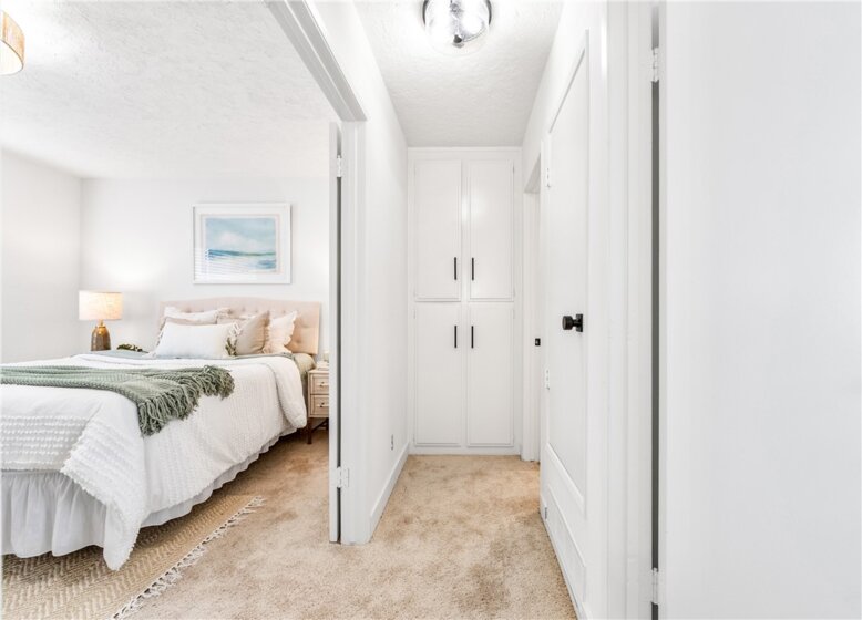 Welcome home to this charming and move-in ready residence tucked inside a quiet, well-maintained Garden Grove community. Offering two bedrooms, one full bathroom upstairs, and a convenient powder room downstairs, this 936 square foot home is thoughtfully laid out and ideal for first-time buyers seeking comfort, privacy, and value in Orange County. The light and bright living room welcomes you in, while the south-facing kitchen window fills the space with beautiful natural light throughout the day. The kitchen opens to a private courtyard patio through a sliding glass door, creating an easy indoor-outdoor flow that leads directly to the oversized two-car garage with washer and dryer hookups and direct access into the home. Recent updates include new flooring, new carpet, fresh interior paint, updated lighting fixtures, and select new appliances, making this home truly move-in ready. Upstairs features one exceptionally spacious bedroom along with a second well-sized bedroom and a large full bathroom. Enjoy the rare benefit of no neighbors above or below, adding to the quiet and private feel of the home. The community offers abundant guest parking, a beautifully maintained greenbelt with benches and gathering areas, a clubhouse, pool, and an adorable community park just steps away, complete with a playground and space to walk dogs or relax outdoors. Ideally located near restaurants, shopping, grocery stores, entertainment, and with easy access to the 22 freeway, this home offers both convenience and tranquility. With a low HOA of only $425 per month and a price point that remains accessible in today’s market, this is a rare opportunity to own a thoughtfully updated home in Garden Grove. Perfect as a first home, a smart investment, or a place to start your next chapter.
