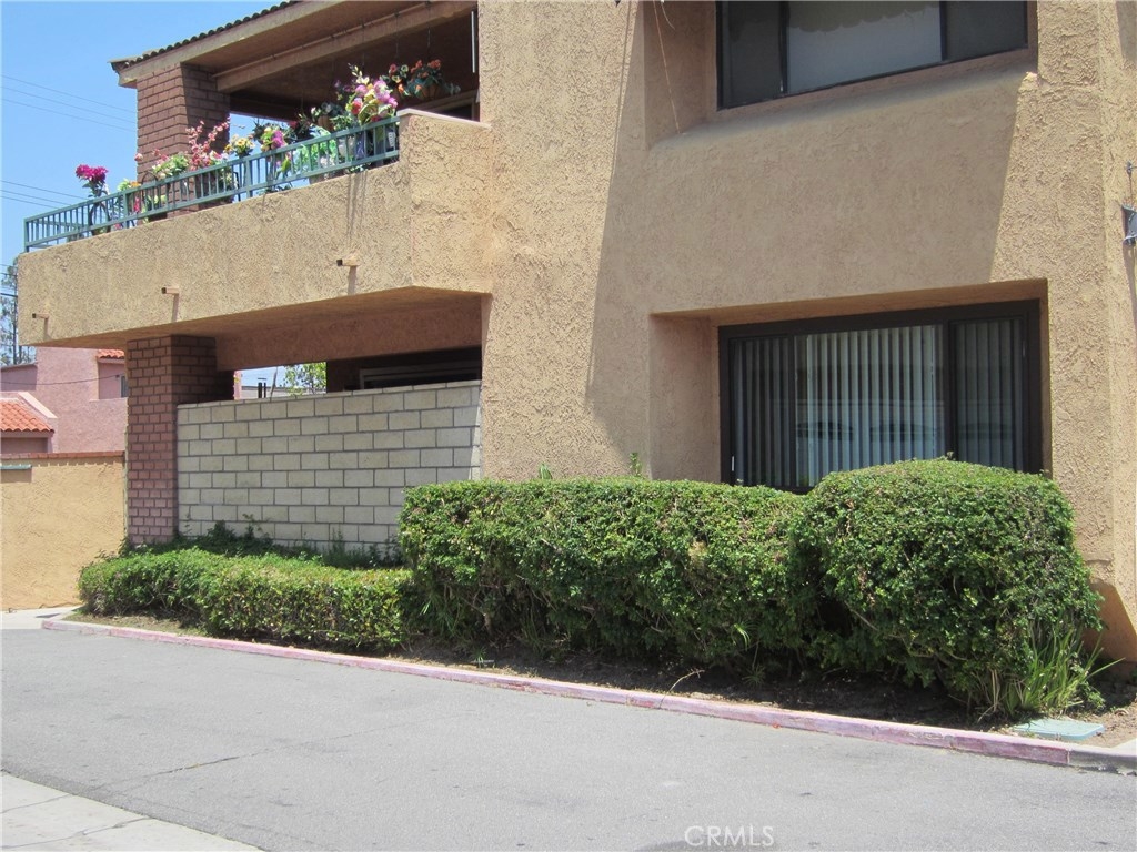 Ground level corner unit with a wrap-around patio. Galley kitchen with a gas range. The refrigerator is included without warranty. Cozy living room has a sliding door to the very private block wall patio. The master suite has a tub and comfort height sink and toilet. The second bedroom also has a sliding glass door to the patio. The quality windows and patio sliding doors from Anlon were installed in 2013 and come with a 25-year warranty. There is another bathroom with a shower. A convenient stackable laundry unit is in the hall. There is a detached two-car garage nearby. HOA covers exterior maintenance, water, trash The home is just to the left of the automatic association gate and a few steps from the pool. Near shopping centers and several houses of worship. Enjoy the many attractions of Little Saigon and the short commute to the 22 freeway.